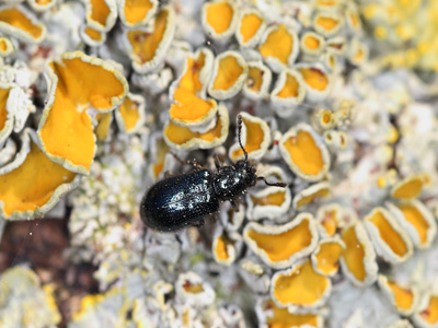 Korynetes caeruleus (DEGEER, 1775) - Blauer Fellkäfer Biologie: Der 3,5 - 7 mm große Käfer lebt im Freiland in alten Bäumen aber auch in verbautem Holz in Gebäuden. Die Art lebt in Laub- und Nadelholz. Jagt Insekten vor allem Anobiidae. Vorkommen und Gefährdung: In Brandenburg wohl überall vorhanden. Beispielnachweise: 21.05.2015 Park Sanssouci/P |