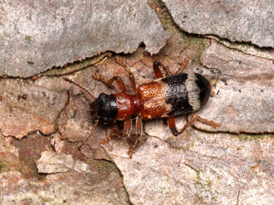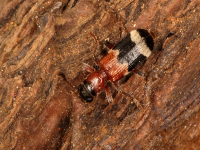 Thanasimus femoralis (ZETTERSTEDT, 1828) - Rotbeiniger Ameisenbuntkäfer Biologie: Der 5,5 - 9,5 mm große Käfer entwickelt sich in Nadelhölzern wie Pinus und Picea. Imagines und Larven leben räuberisch und jagen verschiedene Insekten. Die tagaktiven Imagines finden sich von Mai - August am Holz. Vorkommen und Gefährdung: In Brandenburg wahrscheinlich weitverbreitet und mäßig häufig. Vorkommen in Nadel- und Mischwäldern. Die Art wird in Deutschland als ungefährdet angesehen (RLD 2021). Beispielnachweise: 10.06.2018, 28.07.2018 Wildpark/P, 17.06.2022 Glindow/PM, 22.05.2022 Dippmannsdorf/PM, 25.06.2022 Rabenstein/PM, 23.06.2022 Preschener Mühlbusch/SPN |