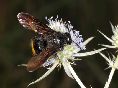 Borstige Dolchwespe Lebensweise: Besiedelt sandige, vegetationsarme und wärmebegünstigte Habitate. Imagos erscheinen Juli bis September. Besuchen gern blaue Blüten. S.h. parasitiert bevorzugt auf Blatthornkäfer-Larven (u.a. Cetonia, Protaetia, Anomala) zu denen sich das Weibchen durchgräbt. Vorkommen und Gefährdung: In Brandenburg selten. Bestand wahrscheinlich zunehmend. Wird in RLBb als Kategorie 3-Art (gefährdet) geführt. In der RLD in Kategorie 2 (stark gefährdet) eingestuft. |