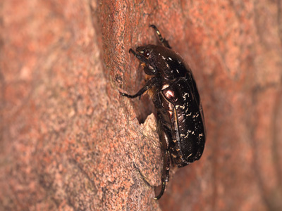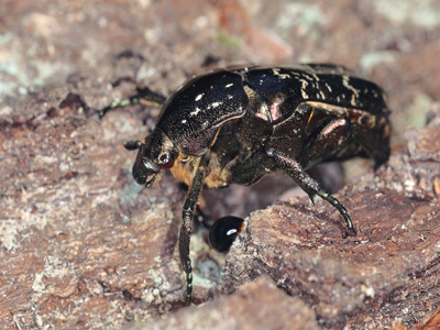 Marmorierter Rosenkäfer Lebensweise: In Mischwäldern mit Altbäumen. Parks, Auen- und Hutewälder, Streuobstwiesen, Alleen, Einzelbäume. Adulte lecken Laubbaumsäfte oder fressen an überreifen und gärenden Früchten. Entwicklung in morschem Totholz und mulmreichen Baumhöhlen (Eiche, andere Laubbäume, Kopfweiden). Entwicklungszeit 3 Jahre?. Käfer erscheinen März bis Oktober. Besucht auch Blüten. Vorkommen und Gefährdung: In Brandenburg weit verbreitet. In RLBB als Kategorie 3-Art (gefährdet) geführt. Im Oderbruch stellenweise nicht selten. Beispielnachweise: 05.06.2016 bei Gusow, 25.04.2015 u. 28.06.2016 bei Kienitz. |