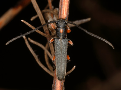 Südlicher Walzenhalsbock Lebensweise: Die oligophage Art entwickelt sich vorwiegend in Asteraceae (z.B. Artemisia, Daucus, Achillea, Hieracium, Tanacetum). In unserem Gebiet besonders in Feldbeifuss (Artemisia campestris). Günstige Habitate sind wärmebegünstigte Trocken- und Halbtrockenrasen sowie Ruderalstandorte. Die Käfer überwintern in der Wurzel der Entwicklungspflanze. Imagos finden sich von April bis Juni an den Wirtspflanzen. Entwicklungszeit einjährig. Wahrscheinlich euromediterranes Faunenelement. Vorkommen und Gefährdung: In Brandenburg zerstreut und selten. Wird in RLBB als Kategorie 2-Art (stark gefährdet) und in der RLD als Kategorie 1-Art (vom Aussterben bedroht) geführt. Funde stammen vorwiegend von Trockenbiotopen am Rand des Oderbruchs (Mallnow, Lebus, Seelow).