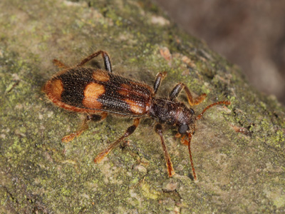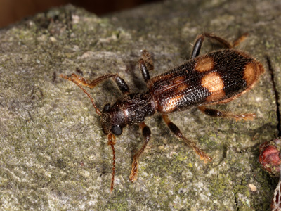 Schöner Buntkäfer Lebensweise: Besiedelt Laub- und Mischwälder und Parks. O. m. kann besonders an Eichen und seltener auch jagend an Nadelbäumen gefunden werden. Käfer und Larven fressen Insekten und deren Larven. Vorwiegend dämmerungs und nachtaktiv. Käfer erscheinen April bis Juli. O. m. wird oft mit Bau- und Brennholz verschleppt (Kosmopolit). Vorkommen und Gefährdung: In Brandenburg weit verbreitet und häufig. Im Oderbruch kaum Nachweise. Beispielnachweise: 06.2011 bei Kienitz im Dachstuhl (K. Neumann) |