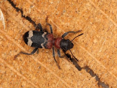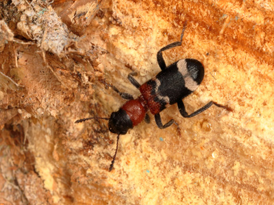 Ameisenbuntkäfer Lebensweise: Nadel- und Mischwälder, Feldgehölze, Parks. Käfer sind an warmen Tagen von Mai bis Juli aktiv. Imagos und Larven ernähren sich von Borkenkäfern und seinen Entwicklungsstadien. Orientiert sich an Pheromonen der Borkenkäfer. Vorkommen und Gefährdung: In Brandenburg verbreitet und häufig. Keine Gefährdung. Im Oderbruch häufig. Beispielnachweise: 17.04.2014, 01.05.2017 bei Kienitz, 05.06.2016 bei Gusow (K. Neumann) |