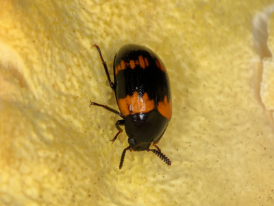 Gelbbindiger Schwarzkäfer Lebensweise: D.p. lebt an den Fruchtkörpern verschiedener Baumpilze, besonders Schwefel- und Birkenporling. Larven und Käfer ernähren sich ausschließlich von Pilzen (mycetobionte Art). Die Entwicklung bis zum Käfer findet im Pilz statt. Imagos überwintern meist in Totholz, teilweise in kleineren Aggregationen. Vorkommen und Gefährdung: In Brandenburg weit verbreitet und häufig. Die Art ist Im Oderbruch überall zu finden. Beispielnachweise: Kienitz (19.10.2015), Sophientaler Polder.