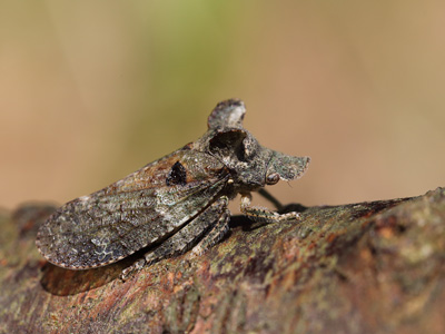 Echte Ohrzikade, Ohrzirpe Lebensweise: Einzige Art mit Anpassung an Baumrinde. Lebensraum sind Waldungen oder kleine Gehölzgruppen. Gern in der Wipfelregion. L.a. saugt Phloem von Bättern und Zweigen verschiedener Laubbäume (polyphag). Larvalentwicklung ist mehrjährig (semivoltin). Imagos erscheinen von Mitte Juni bis Anfang Oktober. Vorkommen und Gefährdung: In Brandenburg und im Oderbruch weit verbreitet. Beispielnachweis: 03.07.2016 bei Kienitz.
