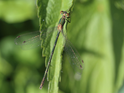 Westliche Weidenjungfer, Gemeine Weidenjungfer, Große Binsenjungfer Lebensweise: Stehende und langsam fließende Gewässer. Eiablage an ufernahen Weichhölzern (besonders Weiden, Pappeln). Fliegt Juli bis September. Ansitzjäger. Larvalentwicklung 2 - 3 Monate. Vorkommen und Gefährdung: In Brandenburg häufig. Im Oderbruch verbreitet und häufig. Geschützt. Nicht gefährdet. Beispielnachweise: 30.06.2013 Sophienthaler Polder (K. Neumann) |