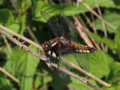 Plattbauch Lebensweise: Flache, besonnte, auch temporäre Gewässer mit spärlicher Vegetation. Häufig Erstbesiedler neuer Gewässer. Fliegt Mai bis August. Ansitz- und Luftjäger. Larvalentwicklung 1 Jahr. Vorkommen und Gefährdung: In Brandenburg häufig. Im Oderbruch verbreitet und häufig. Geschützt. Nicht gefährdet. Beispielnachweise: 30.05.2014, 14.05.2018 Sophienthaler Polder, 03.05.2015 bei Nieschen (K. Neumann) |