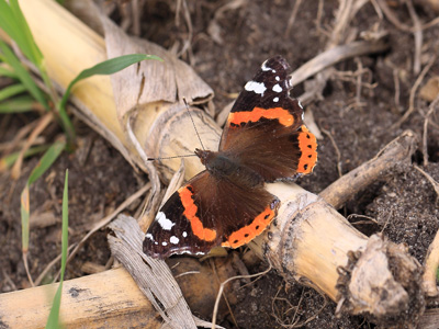 Admiral Lebensweise: Schmetterlinge fliegen bei uns in einer Generation von Juni bis Oktober. Be-siedelt verschiedenste Habitate. Typischer Wanderfalter. Ab April Tiere regelmäßig aus dem Mittelmerraum in Deutschland. Unsere Falter wandern im Sommer aus warmen Offenlandhabitaten nach Norden ab. Im Herbst wandern sie wieder in die südlichen Winter-quartiere. Überwinterungen in Deutschland möglich. Entwicklung an Brennnessel (Urtica dioica). Raupen stachelig,variabel gefärbt, gelbgrau, braun bis schwarz. Falter saugen gern auf verschiedenen Blüten und im Herbst an überreifem Obst. Vorkommen und Gefährdung: In Branden-burg verbreitet. Häufig und ungefährdet. Im Oderbruch weit verbreitet und sehr häufig. Beispielfunde: 28.04.2013 bei Kienitz, 28.09.2014 Manschnow, 04.10.2014 Sophienthaler Polder (K.Neumann) |