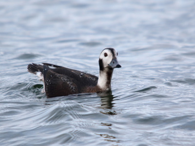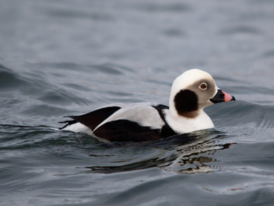 Eisente Merkmale: Kleine (39 - 47 cm), braun, schwarz, weiß gefärbte Ente. Runder Kopf und kleiner Schnabel. Männchen: Im Prachtkleid Mantel, Schulter, Hals und Kopf weiß. Kopfseite hellbraun. Halsseitenfleck braunschwarz. Rosa Schnabelband. Lange mittlere Steuerfedern. Im Schlicht- und Herbstkleid mit mehr braun und blasser. Weibchen im Prachtkleid: Weißlicher Kopf, schwärzliche Scheitel- und Kopfseitenflecken. Ohne lange Steuerfedern. Schulterfedern rötlich braun. Im Schlichtkleid: blasser, ähnlich dem Schlichtkleid des Männchens. Lebensweise: Brütet in arktischer Tundra, lokal an nördlicher Ostsee. In Deutschland im Winter in großer Zahl an der Ostseeküste. Ernährt sich hier von Mollusken. Seltener Durchzügler und Wintergast im Binnenland. Vorkommen und Beobachtungen: In Brandenburg unregelmäßiger Durchzügler und Wintergast. Einzeln oder in kleinen Trupps auf Seen, größeren Teichen und Flüssen. Im Oderbruch nur gelegentlich. Beispielbeobachtung: u. a. 29.01.2017 (K. Neumann) Literatur: Svensson et al. 1999, Rutschke 1983, Becker 2000 |