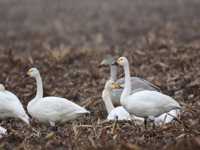 Zwergschwan Lebensweise: Brütet in der nordrussichen Tundra. Überwintert im Nordwesteuropa. Von Oktober bis April in Deutschland auf Grün- und Ackerflächen in der Nähe von Seen und großen Flüssen oder an der Küste. Vorkommen in BB und Gefährdung: In Brandenburg und dem Oderbruch unregelmäßiger Durchzügler und Wintergast. Meist in kleinen Trupps oder einzeln. Häufig vergesellschaftet mit Singschwänen. Beispielnachweise: 05.04.2013 bei Golzow, 03.01.2017 bei Reitwein, 13.02.2021 bei Reitwein (K. Neumann) Literatur: Svensson et al. 1999, Ryslavy 2009, 2011 |