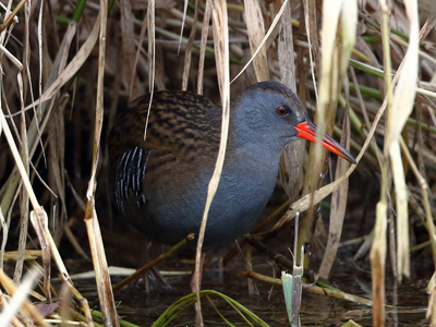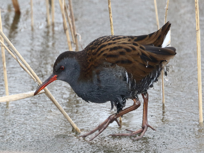 Wasserralle Lebensweise: Bewohnt die Ufervegetation größerer und kleinerer Gewässer. Meist versteckt. Brutzeit April bis August. Vorkommen und Gefährdung: In Brandenburg und dem Oderbruch verbreiteter und häufiger Brutvogel. Stand- und Strichvogel. Kann im Oderbruch das ganze Jahr über beobachtet werden. Beispielnachweise: 02.02.2019 Groß Neuendorf und 14.02.2021 Bienenwerder (K. Neumann) Literatur: Svensson et al. 1999, Becker 2000 |